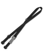 La sangle peut être enfilée dans des anneaux pivotants ou des boucles (non fournis) ou combinée avec des accessoires de sangle disponibles (vendus séparément).