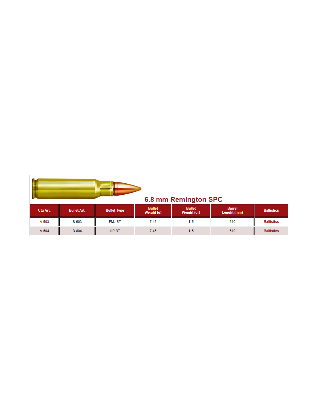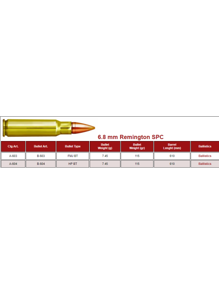 MUNITION PRVI PARTIZAN 6.8SPC 115GRS FMJ BT A-603 BOITE DE 20
