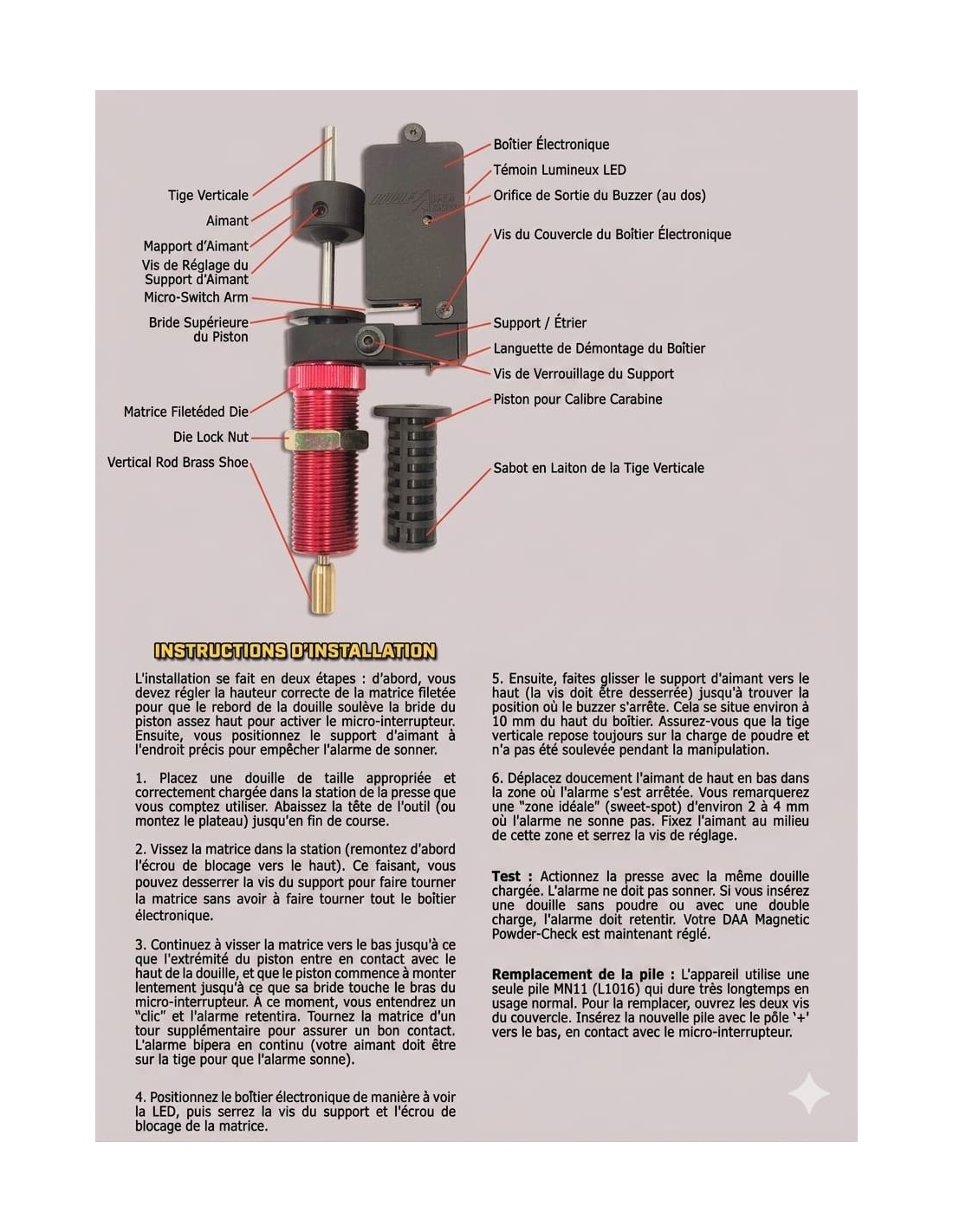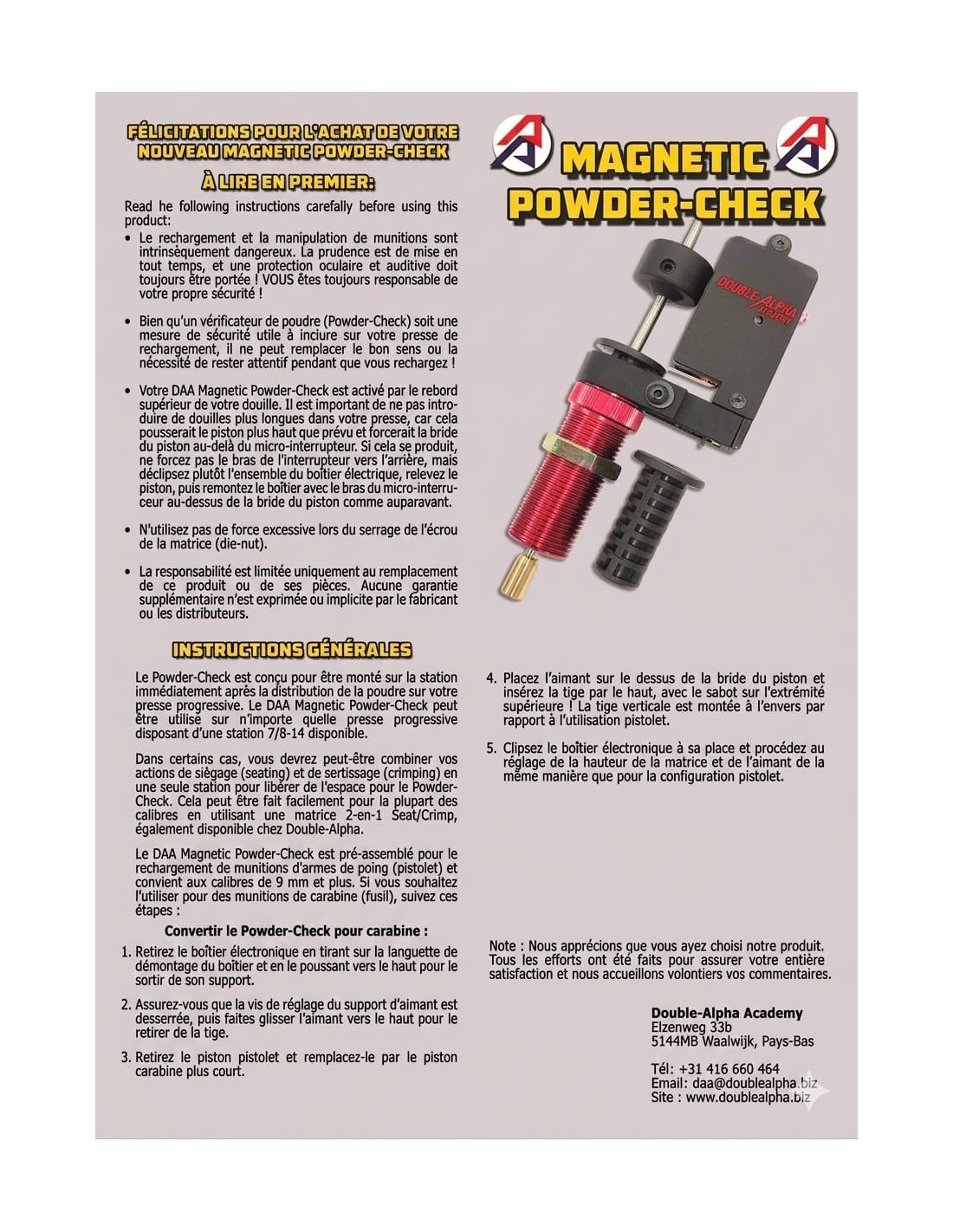 Le contrôleur de charge de poudre magnétique DAA (en attente de brevet américain) est un accessoire quasi indispensable pour toute machine à rechargement progressif, contribuant à assurer la qualité et la sécurité de vos munitions rechargées.