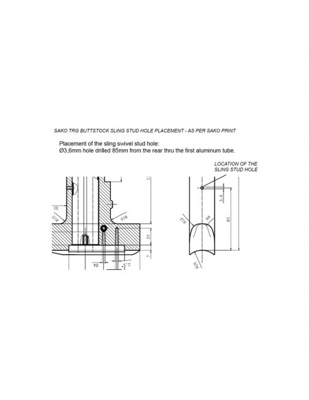 L'installation du BT29 EXIGE le retrait temporaire de l'assemblage de la crosse et le perçage d'un second trou. Bien que cela puisse être accompli avec des outils à main courants, B&T Industries L.L.C. recommande fortement qu'un armurier compétent installe le BT29 Sako TRG Rail Kit.