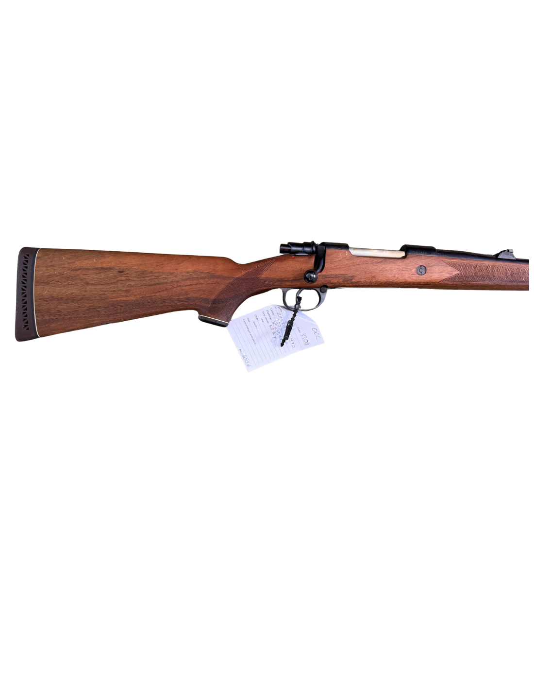 Crosse en noyer poncé huilé, présente quelques traces d'usage. Très bon état général.