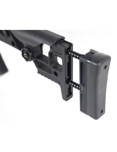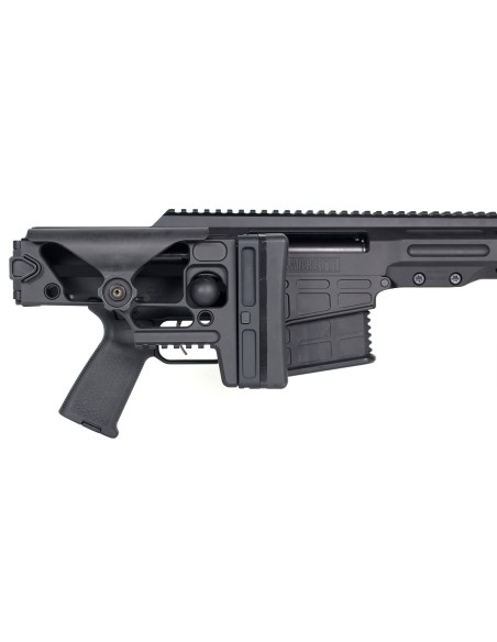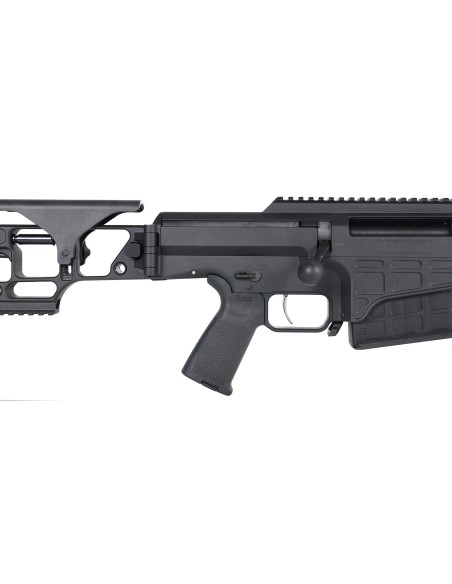D'origine en single stage, nous pouvons fournir une double stage (bossette) en option. La crosse MRAD se replie sur le côté droit, réduisant la largeur totale pour un encombrement minimal et une facilité de transport. Lorsqu'elle est déployée, la crosse se verrouille solidement en place, offrant une interface aussi rigide et stable que n'importe quelle carabine à crosse fixe.