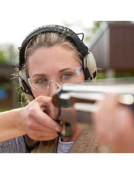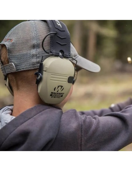 Ce Casque Walker's Razor Slim Electronic FDE a un design fin qui ne vous gênera pas lorsque vous placerez votre joue sur l'appui-joue de votre fusil. Il offre un NRR de 23 dB et ce, de manière très dynamique. En effet, le protège-oreilles est équipé de deux microphones omnidirectionnels à haut gain qui enregistrent tous les sons ambiants. Ces sons sont ensuite reproduits par les haut-parleurs HD du protège-oreilles. Ainsi, vous pouvez tout entendre clairement, même avec les protections auditives. Dès que le protège-oreilles Walker's Razor Slim Electronic FDE enregistre un son fort, il commence à l'atténuer grâce à la SAC (compression activée par le son). Cette compression activée par le son a une vitesse de réaction de seulement 0,02 seconde.