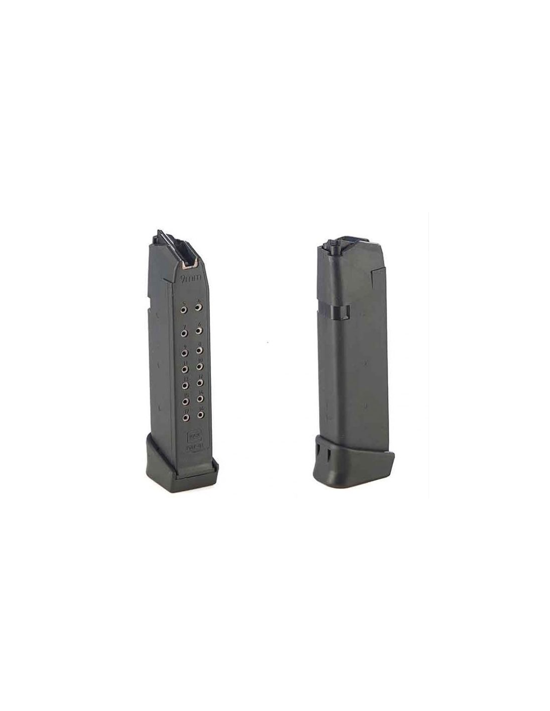 Chargeur GLOCK 17 avec talon +2 coups portant la capacité à 19 coups. Gen 4 élévateur noir.
