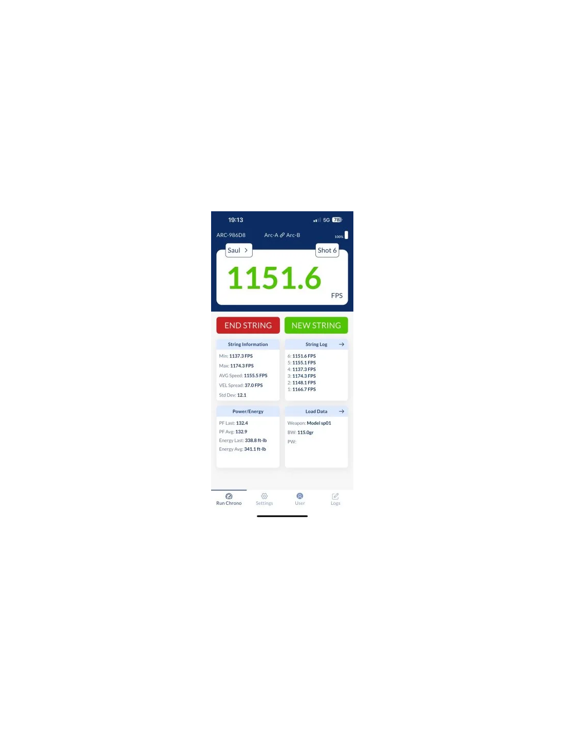 - Affichage des Données en Direct : Voir la vitesse des tirs, l'écart type, le facteur de puissance et plus encore, affichés instantanément sur votre appareil.