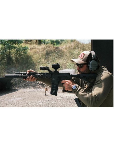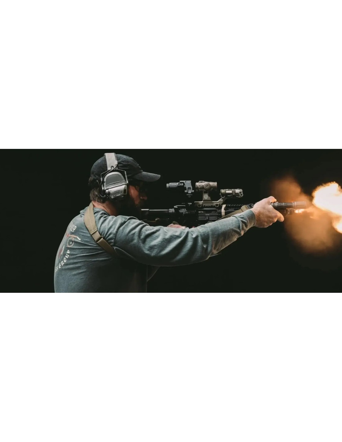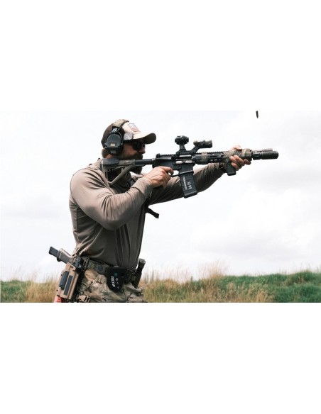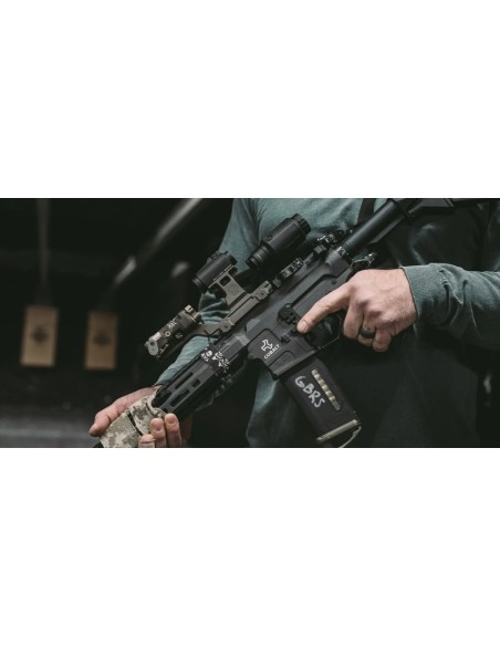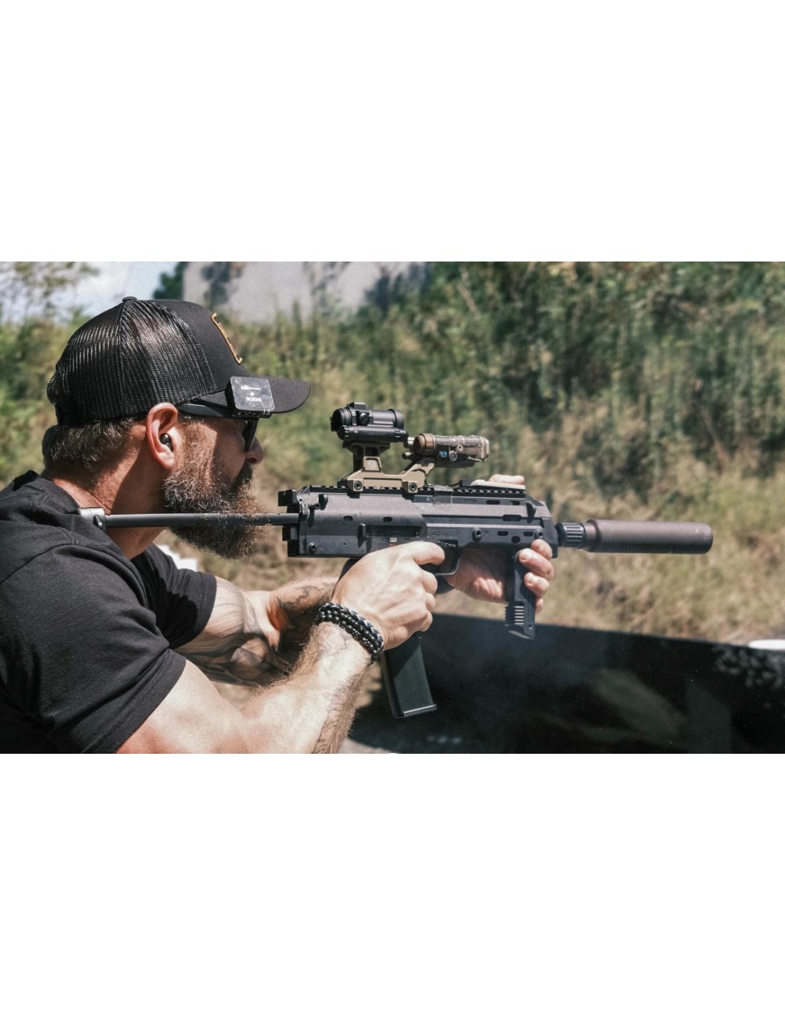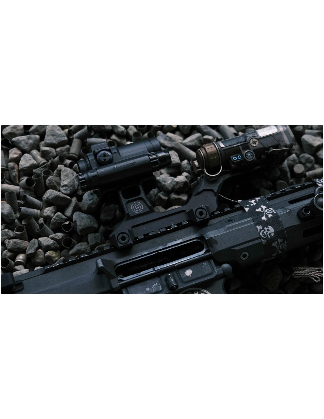 Il n'est plus nécessaire de compromettre votre prise en main à cause de l'équipement ou de déplacer vos mains à cause de l'espace limité sur le rail. Nous y parvenons en élevant les accessoires tels que la lumière ou le laser hors du rail Picatinny et plus près de l'optique point rouge. Cela permet d'éviter l'obscurcissement et de placer le poids au centre de la plateforme, au-dessus du magasin.