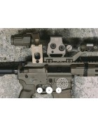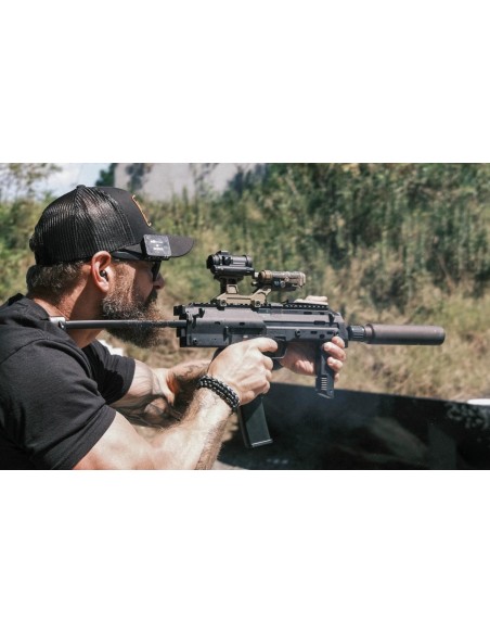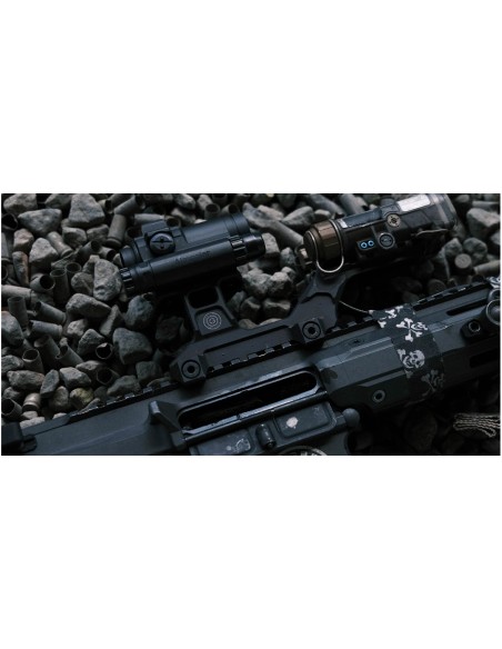 La conception unique et brevetée offre une plate-forme MIL-STD-1913 ou Picatinny surélevée pour fixer directement des accessoires tels que des lumières, des optiques, des thermiques et des dispositifs de visée. Il est parfait pour les plateformes PDW/SMG super courtes où l'espace de rail est limité, mais où le montage d'une lumière et d'un dispositif de visée est toujours critique. Le passage au niveau du cou permet la gestion des câbles ou le passage des viseurs sur les variantes AIMPOINT® et Trijicon®.