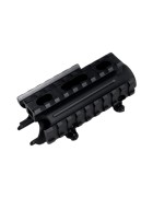 -2 rails latéraux avec respectivement 6 et 9 fentes pour la lampe de poche, le laser et d'autres accessoires.