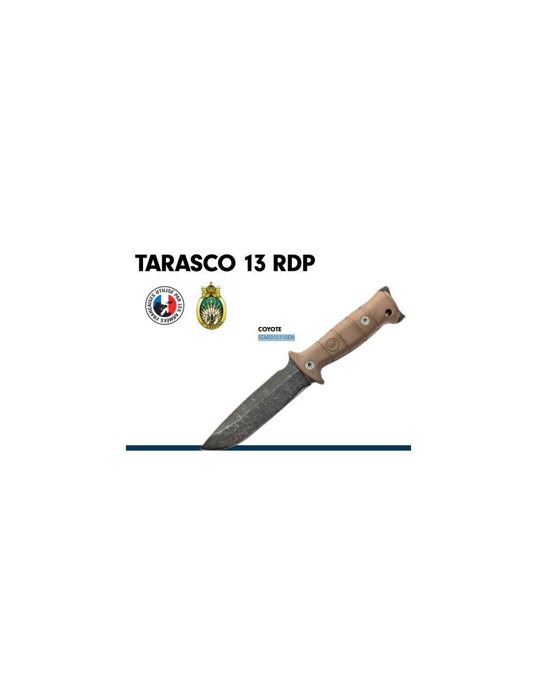 Le TARASCO, conçu avec l'expertise du 13ème RDP (Régiment de Dragons Parachutistes), une unité des Forces Spéciales Françaises spécialisée dans le renseignement en milieu hostile, est un couteau destiné aux amateurs de bushcraft et aux tacticiens. Sa conception est le fruit d'une collaboration étroite, visant à répondre aux exigences des opérations sur le terrain, où les techniques de survie sont cruciales.
