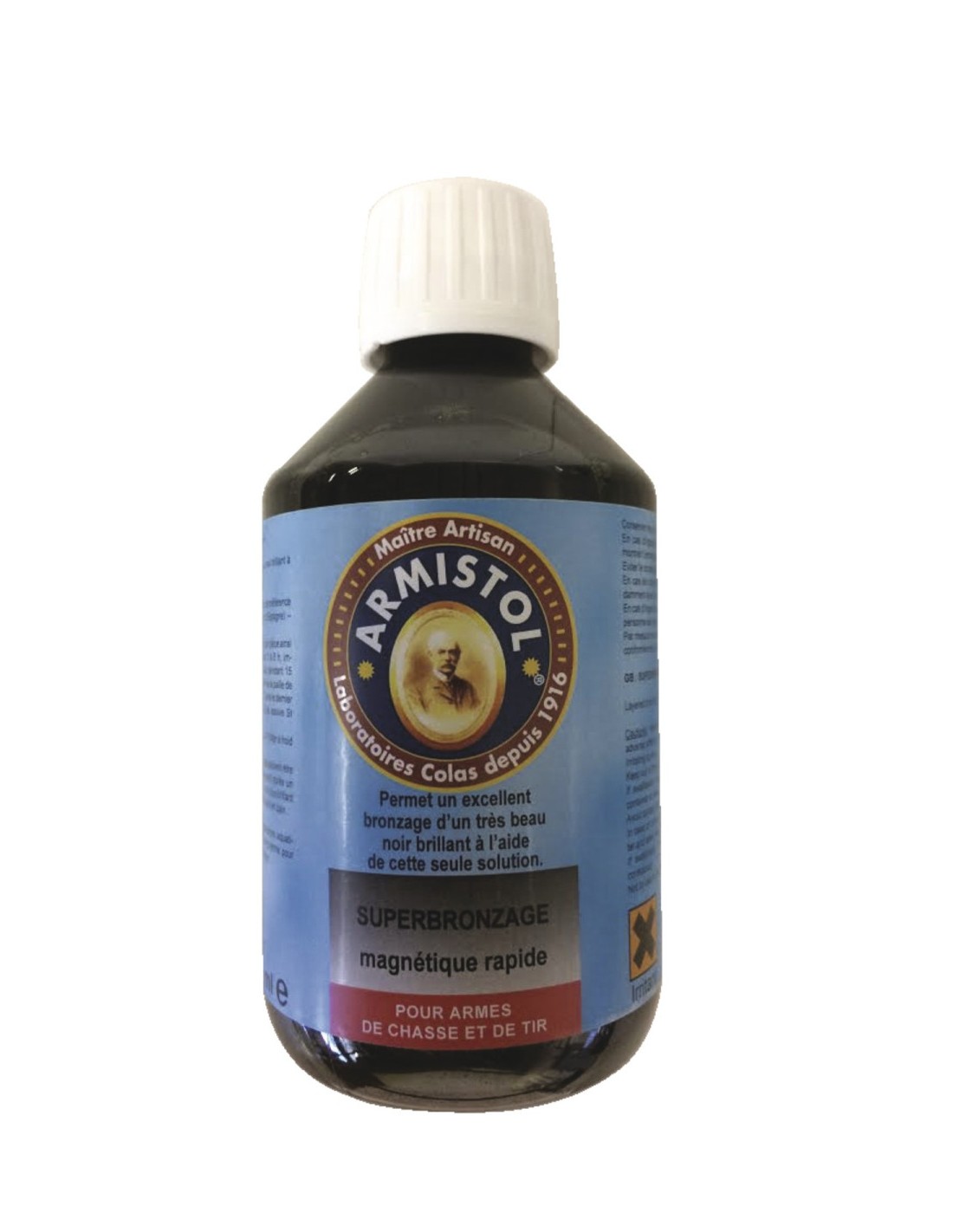 Le Superbronzage Armistol est un produit pour le bronzage à froid des canons et pièces métalliques. Cette solution permet de redonner l'aspect d'origine à vos canons et d'obtenir un noir brillant.