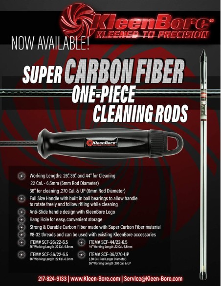 La tige de nettoyage pour fusil KleenBore® Premium Super Carbon Fiber est une tige de haute qualité conçue pour être légère, durable et ne pas rayer les surfaces. Sa structure en fibre de carbone garantit un nettoyage efficace et sûr du canon de votre fusil.