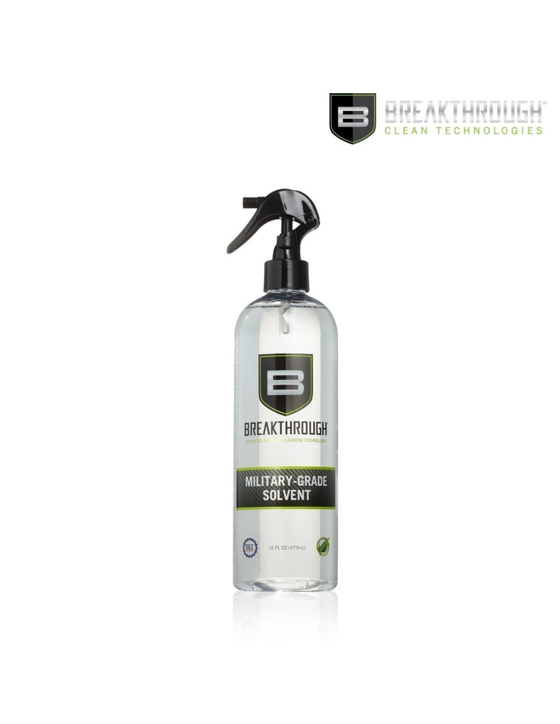- Le solvant qualité militaire Breakthrough® est inodore, non colorant, élimine totalement l’encrassement, et s'évapore complètement, ne laissant aucun résidu. Son pH est totalement neutre, ce qui n’engendre aucun dégât sur les parties bois, métal, plastique, polymère, cerakote ou water-transfert de votre arme à feu. De plus, contrairement à des solvants classiques, le solvant qualité militaire Breakthrough possède un point d’ignition de 65° C et est donc considéré comme ininflammable. L’efficacité du solvant Breakthrough est inégalée, réduisant de façon drastique la durée du nettoyage tout en consommant moins de produit.