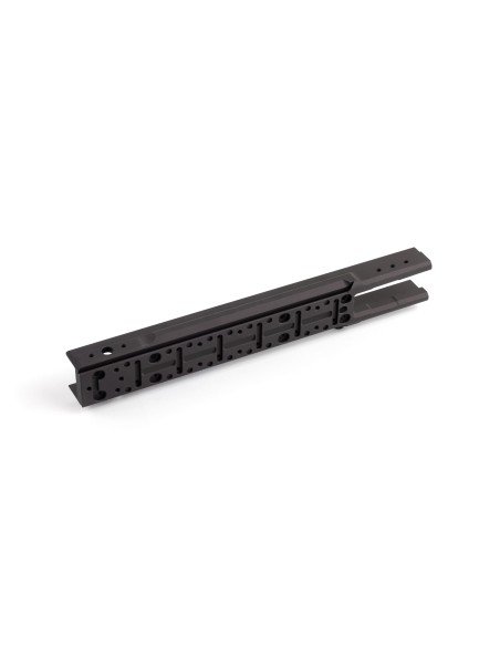 Cet avant-bras est équipé d'un rail Arca découpé directement dans l'avant-bras et d'une pléthore de positions de montage filetées. Il ne comporte pas de poches d'allègement afin d'ajouter du poids à votre équipement pour compenser le recul et permettre un repérage clair des tirs.