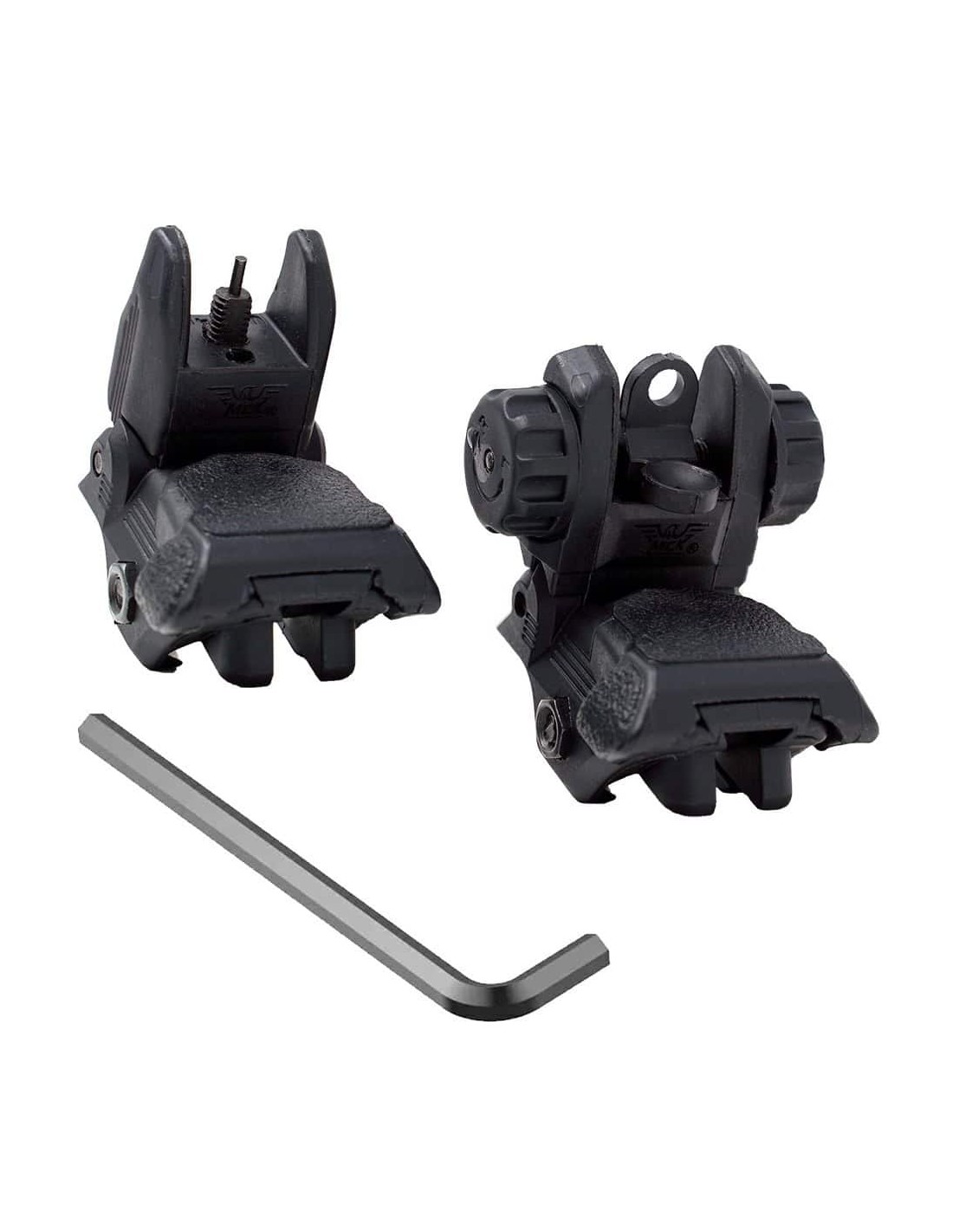 Le kit de viseurs rabattables MCKBUS est un système de visée robuste de type AR, conçu pour une utilisation principale ou comme solution de secours simplifiée pour vos optiques. Dotés d'un mécanisme de verrouillage à ressort, ces viseurs restent solidement en place, qu'ils soient déployés ou repliés. Le guidon de type HK permet une acquisition rapide de la cible, tandis que la hausse à double ouverture garantit un réglage précis.