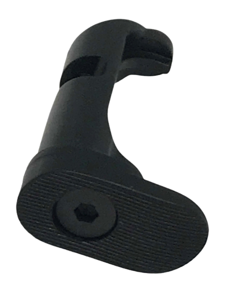 Ce verrou de chargeur est prolongé vers l'arrière par une petite plaque rapportée qui permet de déverrouiller plus facilement le chargeur lors des reloads.