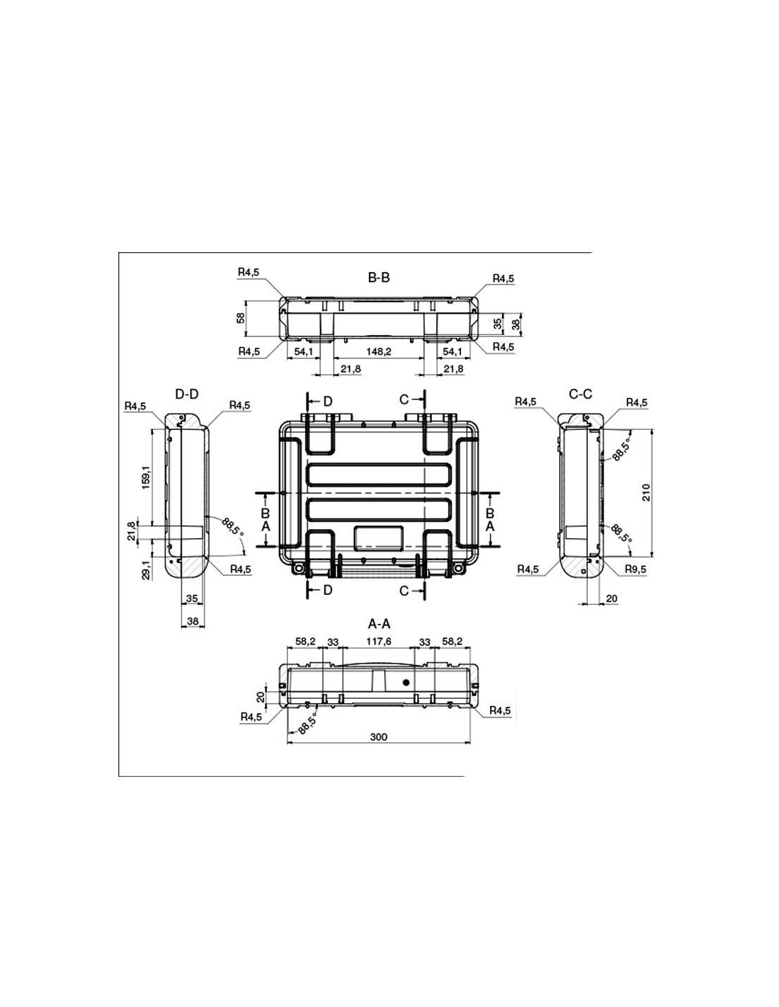 - Dimensions intérieures: 300 x 210 x H58 mm