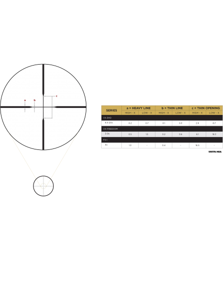 Valeur de réglage du vent par clic 1/4MOA