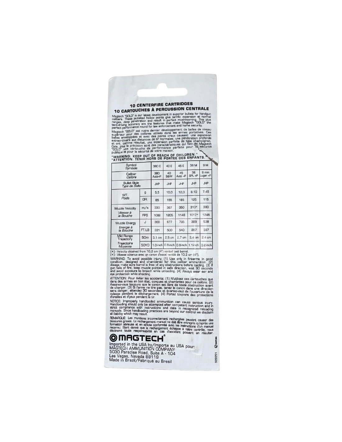 MUNITION MAGTECH 38 SPL+P GOLD DOT * BOITE DE 10