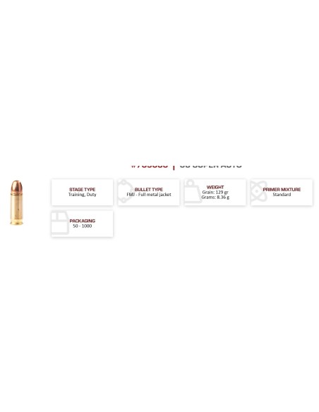 MUNITIONS FIOCCHI 38 SUPER AUTO 129GR BOITE DE 50