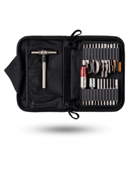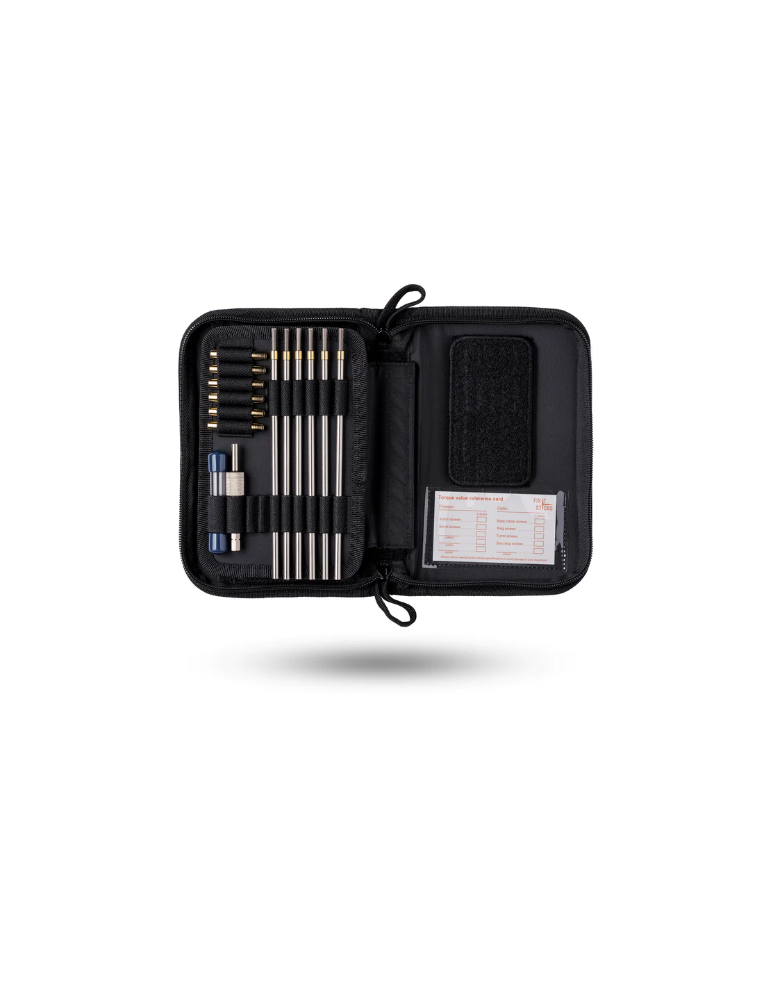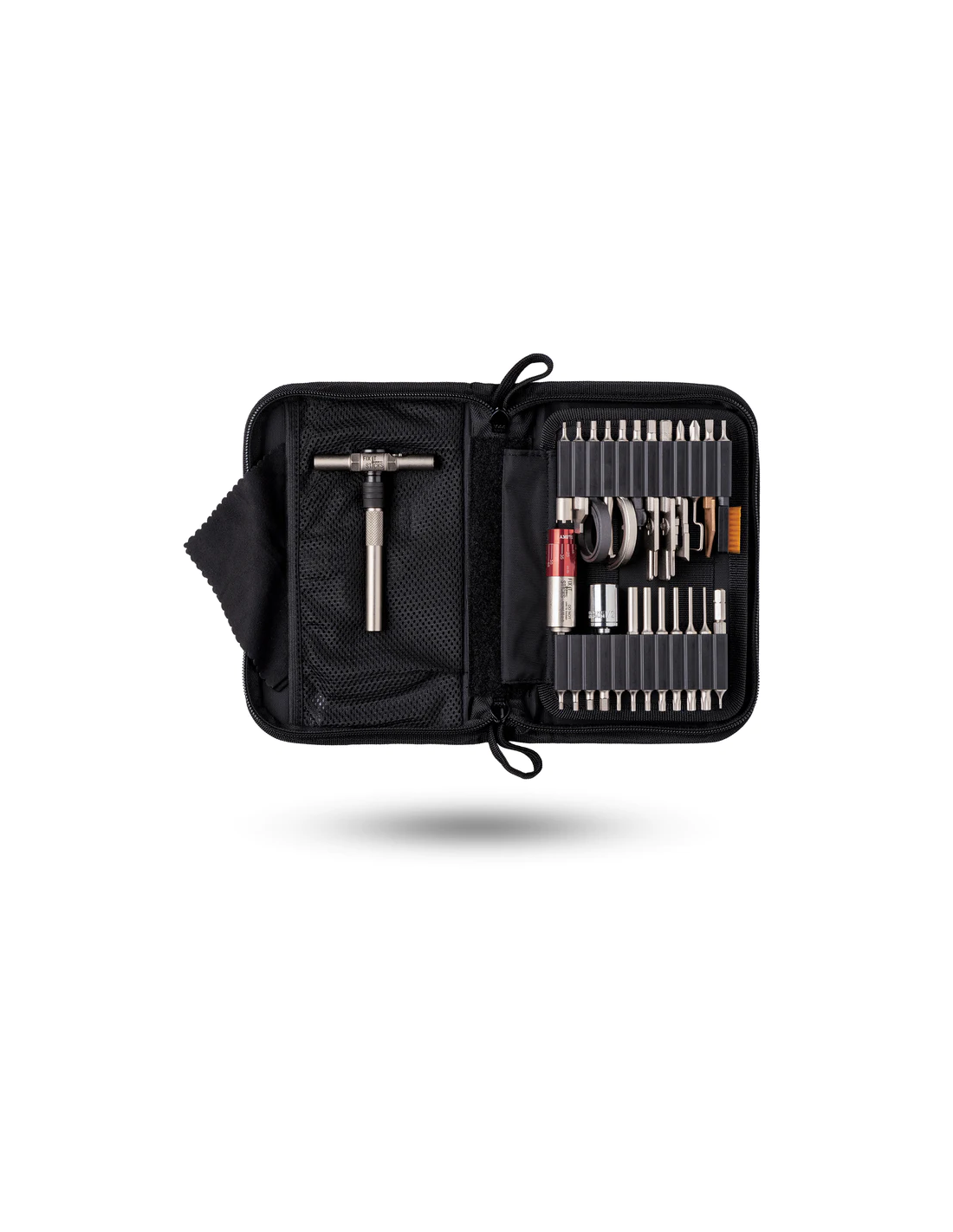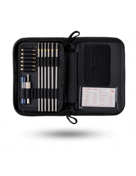 Cette trousse à outils compacte et polyvalente a été conçue spécialement pour permettre aux tireurs 3 armes de rester dans la compétition, quels que soient les défis auxquels ils sont confrontés sur le terrain. La trousse à outils de compétition pour 3 guns offre aux tireurs un assortiment complet d'outils pour entretenir les carabines, les pistolets et les fusils, ainsi que pour serrer les optiques et les accessoires au couple correct, tout en étant en déplacement. L'ensemble de la boîte à outils est livré dans une mallette de transport souple qui peut se glisser dans une poche de cargo.