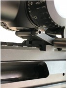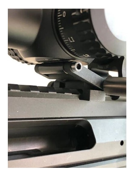 En cas de dégagement minimal, il peut être nécessaire de retirer la vis à oreilles et la pince, puis de faire glisser le Scope Jack sur le rail par le côté et de le réassembler.