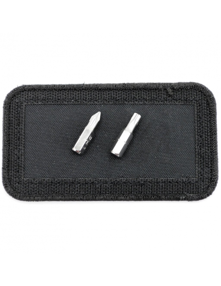 Le patch magnétique se fixe à l'avant de la mallette Fix It Sticks Deluxe par Velcro.