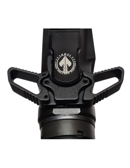 Sur cette charging handle ADC les deux leviers articulés agissent tous les deux sur le verrou pour grandement faciliter la préhension à un doigt, aussi bien à droite qu'à gauche.