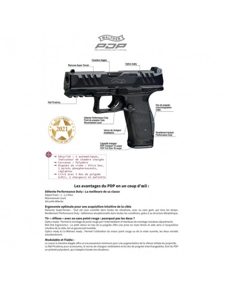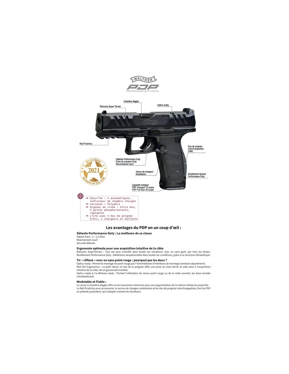 PISTOLET WALTHER PDP PRO SD COMPACT OR (OPTIQUE READY) 9X19 4.6\" CAL 9X19