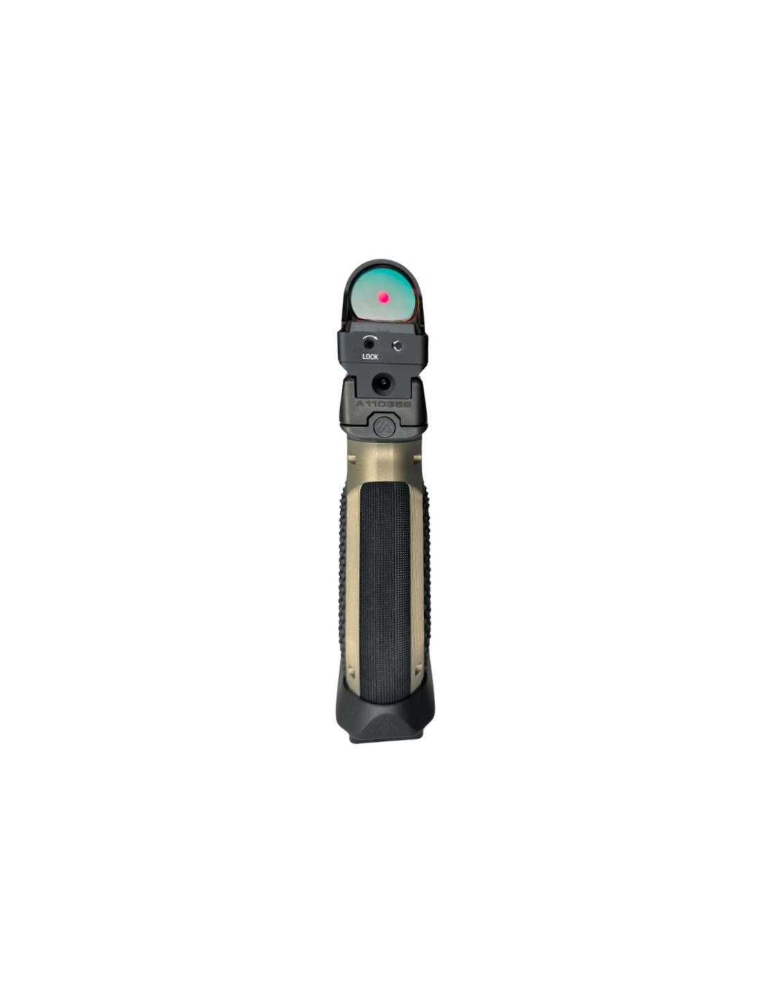 Ceci a été réalisé grâce à une ligne de visée permanente qui, contrairement aux pistolets de l'ancienne école, ne se déplace pas pendant le cycle de tir. Grâce à cette caractéristique, le tireur peut facilement contrôler la cible à tout moment, même lors d'un tir rapide, car il ne perdra jamais la ligne de visée. Les points rouges dureront beaucoup plus longtemps sur le pistolet Alien grâce à la partie supérieure de la glissière qui ne se déplace pas. Sur la plupart des pistolets, le mouvement de la glissière endommage le point rouge, ce qui nécessite un remplacement constant. Le point rouge du pistolet Alien aura la même durée de vie que celui d'un pistolet-mitrailleur ou d'un fusil standard - il a été conçu pour fonctionner de la même manière.