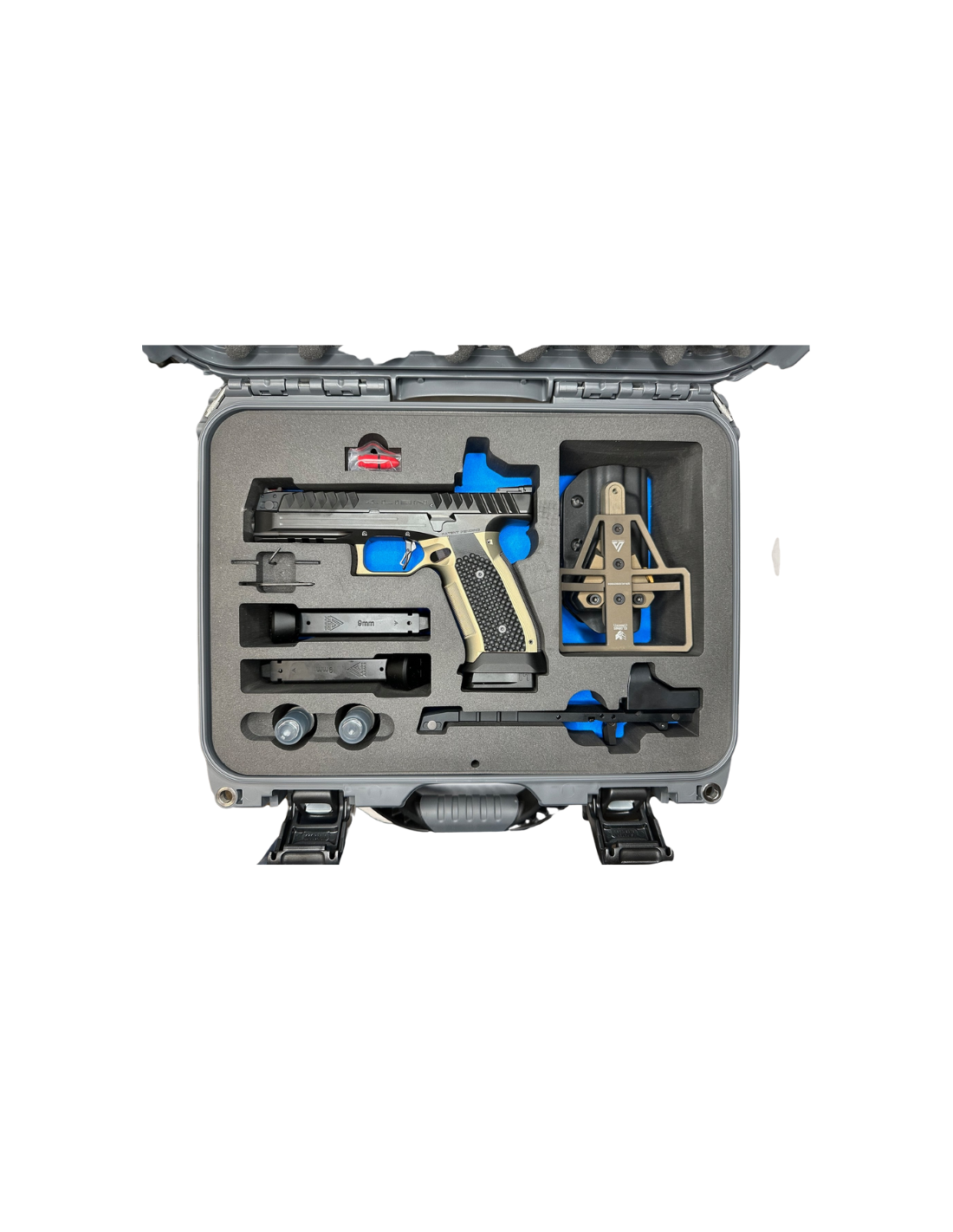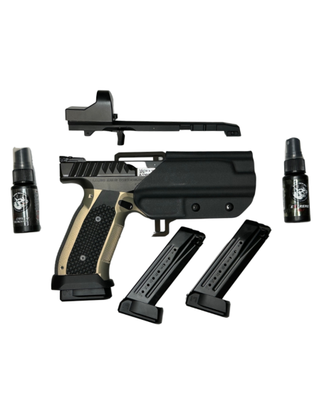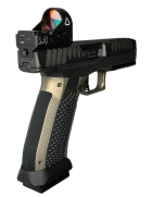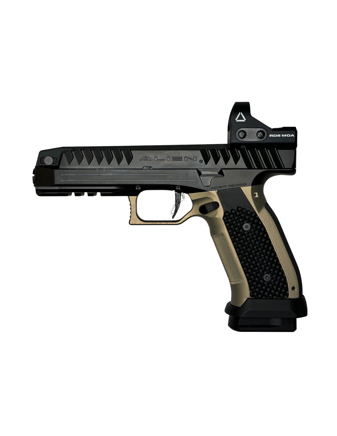En un seul clic, le tireur peut changer la nature du pistolet Alien en modifiant la partie supérieure de la glissière. Différents rails de glissière sont disponibles pour la visée métallique, de nombreux types de viseurs à point rouge, ou même le rail MIL-STD-1913. De plus, l'Alien peut être équipé d'un kit de division Open, qui comprend un compensateur, une glissière supérieure de division Open, un puits de chargeur et d'autres améliorations optionnelles.