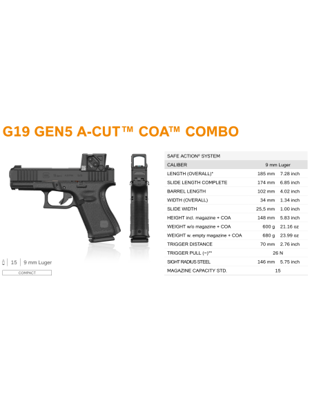 PISTOLET GLOCK 19 GEN5 FS A-CUT COMBO AIMPOINT COA
