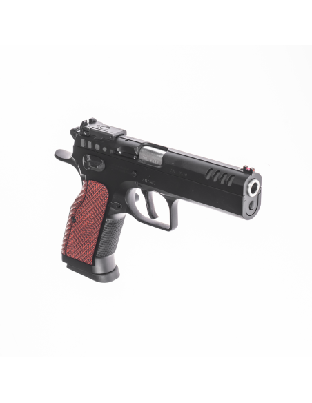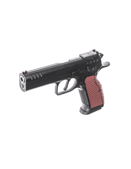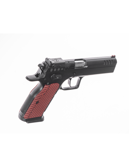Tanfoglio enrichi sa gamme avec le modèle Stock, pistolet semi-automatique double action avec un nouveau système de détente plate, nouveau grips G10, nouvelle hausse, guidon fibre optique, sécurité ambidextre, bouton de chargeur étendu.