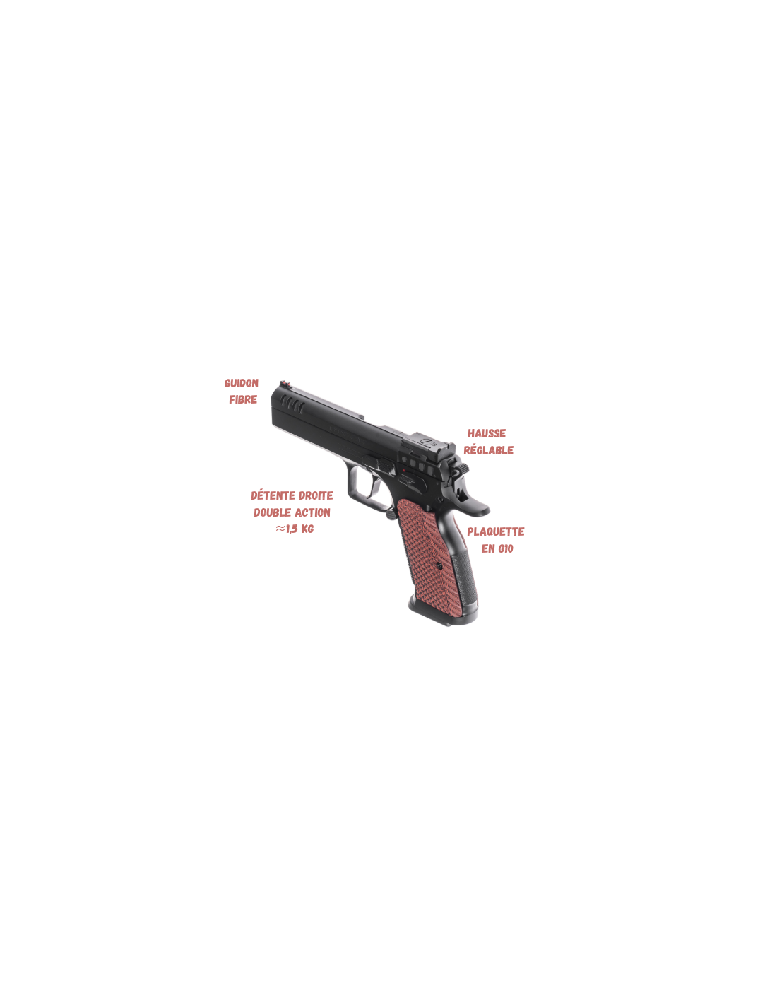 - Livré dans une mallette ABS TANFOGLIO avec 2 chargeurs 17 coups.