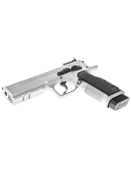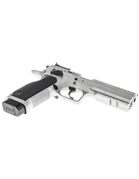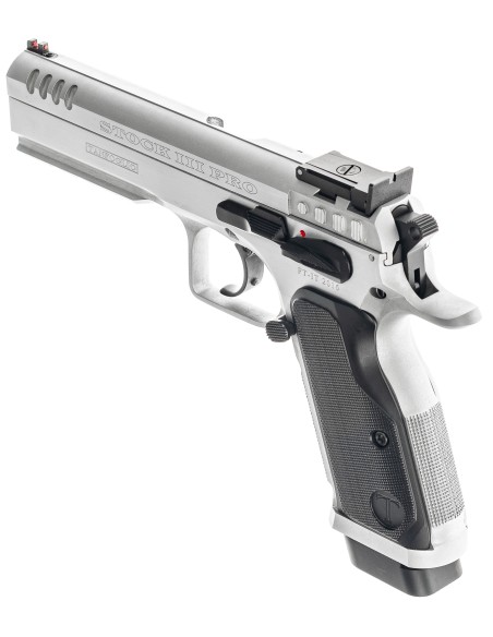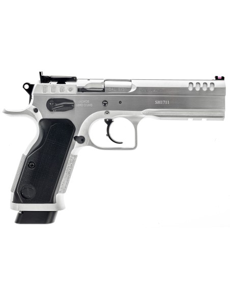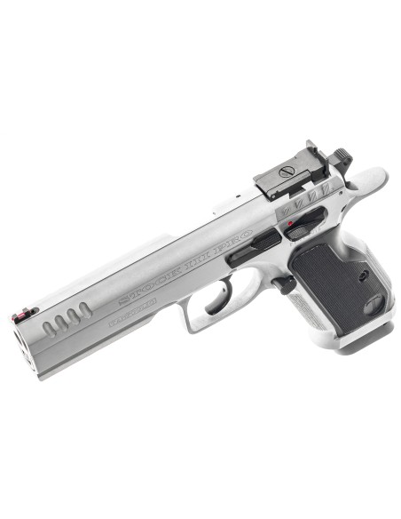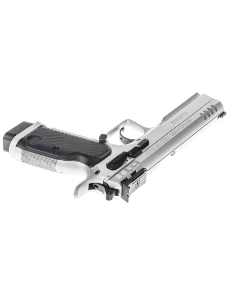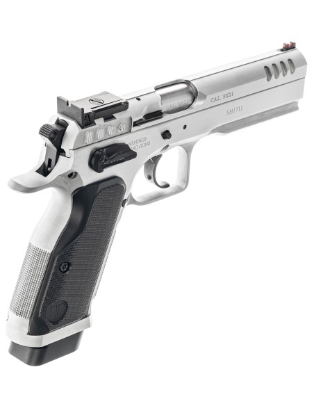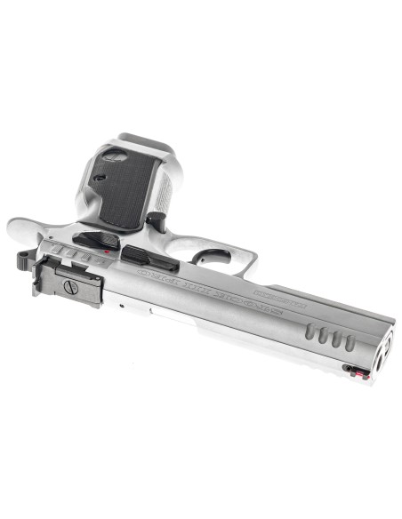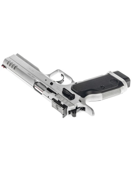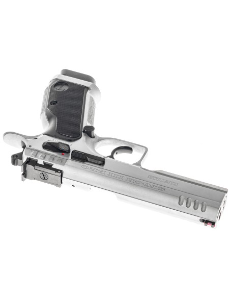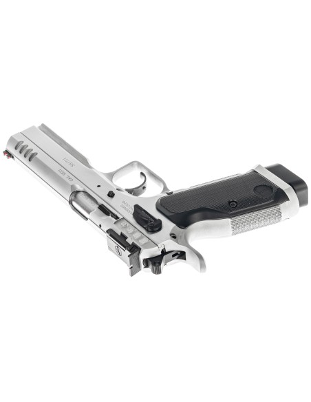 Évolution du modèle Stock III avec un canon polygonal tronconique (bull-barrel), de nouvelles poignées en aluminium, finition chromée et une nouvelle configuration de détente haute performance.