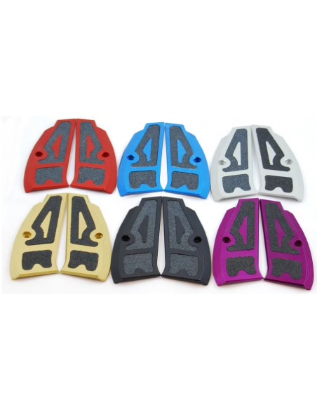 Ces plaquettes CZ SP01/Shadow2 sont disponibles en six belles couleurs, ces plaquettes CZ sont précisément usinées pour un ajustement parfait sur votre CZ SP01/Shadow2, afin d'éviter tout mouvement indésirable. Elles se montent en utilisant les vis d'origine fournies avec vos plaquettes CZ.
