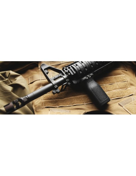 Conçu pour être utilisé avec les garde-mains à rail Picatinny 1913, le RVG est une poignée avant verticale basique, légère et économique. Sa forme ergonomique permet de l'utiliser comme une poignée verticale traditionnelle. Il a également été optimisé pour être utilisé avec la technique de tir « thumb break ».