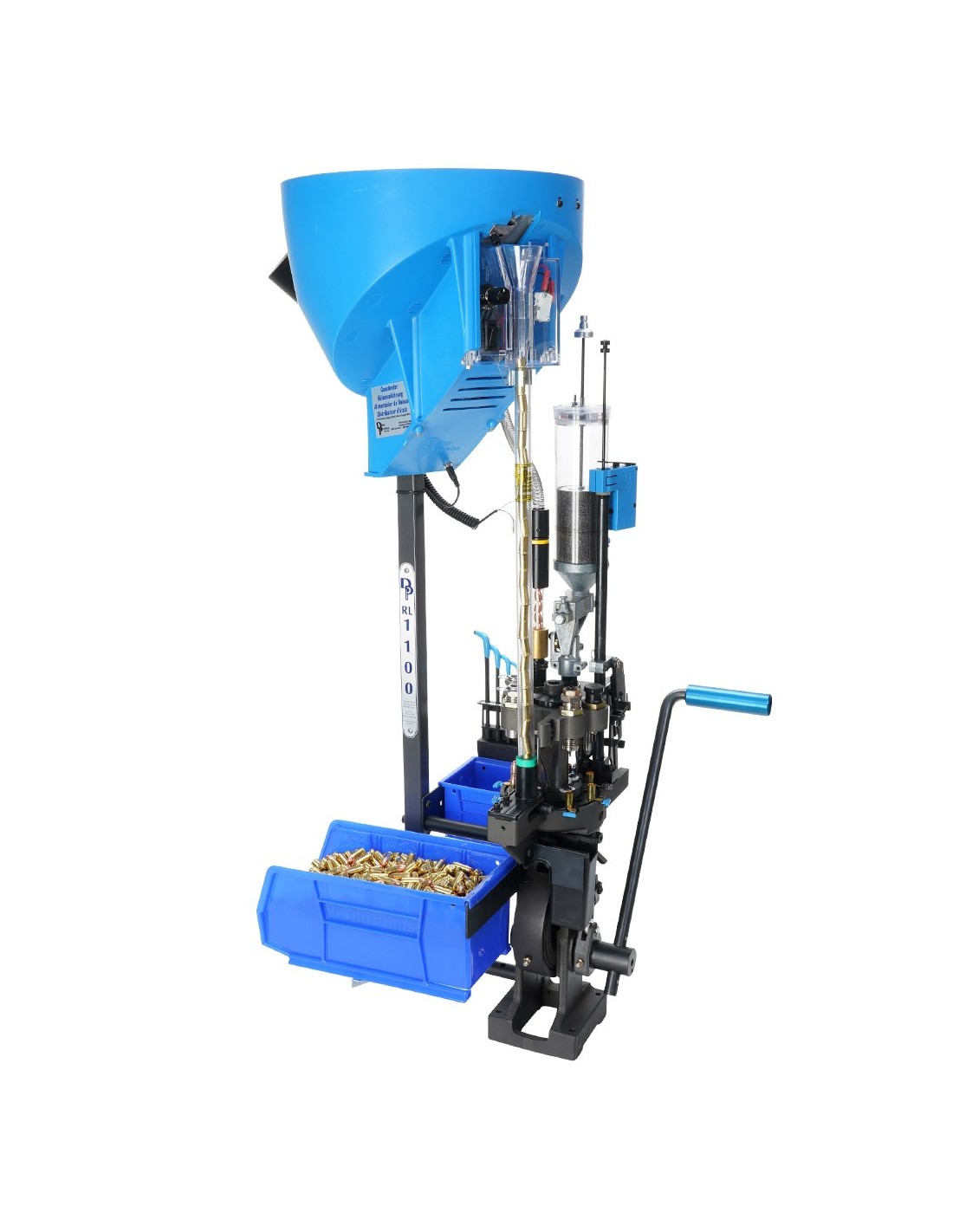 Elle accepte les cartouches courantes de 32 ACP à 308 Winchester, jusqu'à 2,75" de longueur totale. La 1100 est équipée d'un chargeur de douilles à vitesse variable (inclus) qui vous permet de régler la vitesse de façon infinie de 0 à 8 RPM. Le moteur est doté d'une alimentation universelle pour les voltages nationaux et étrangers - 110 ou 220 volts, 60 ou 50 hz, il vous suffit de changer la prise pour le style approprié à votre région. Le bol est doté d'une manchette de fenêtre réglable et d'un déflecteur de douilles, pour une plus grande plage de capacité de cartouches.