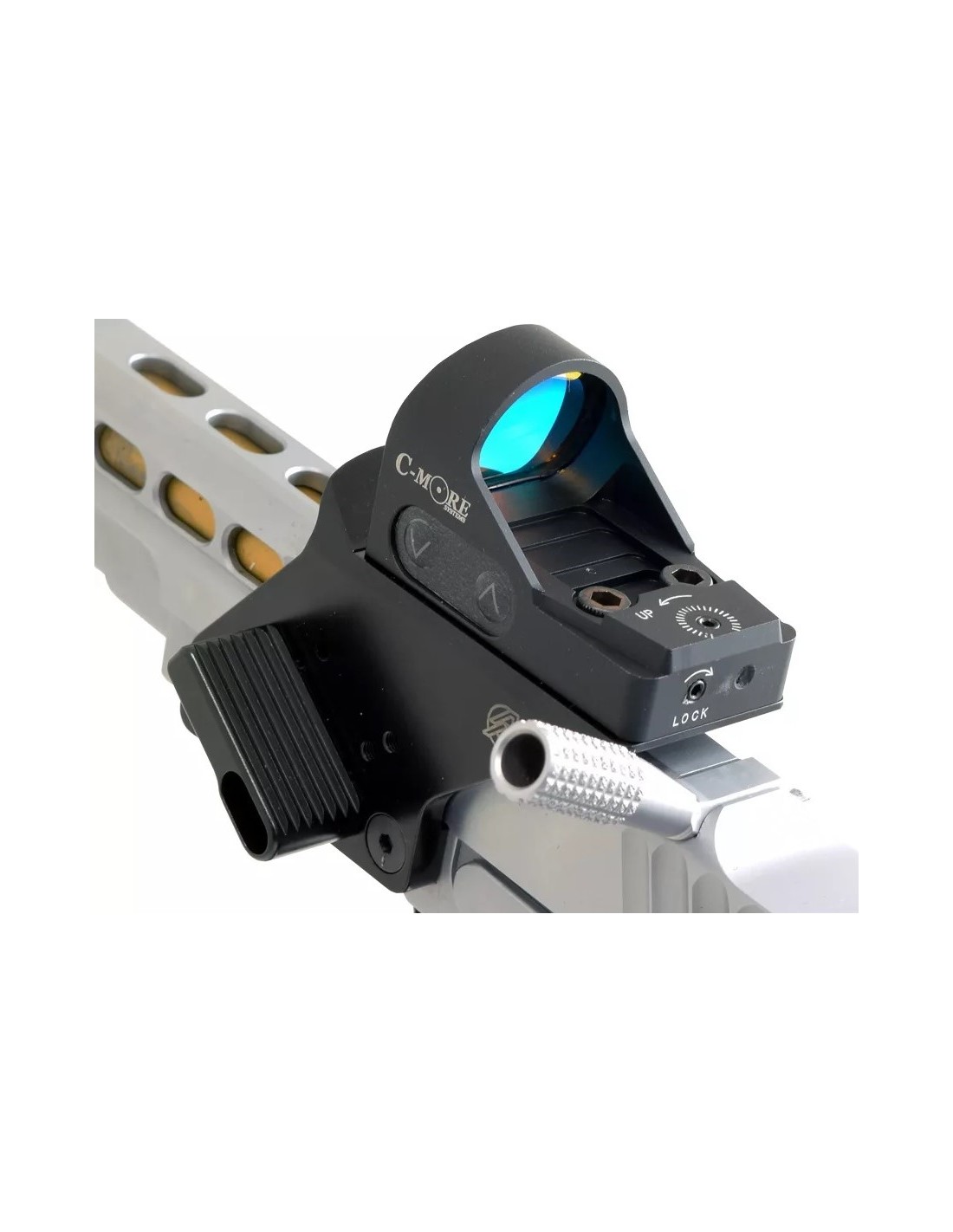 Un protège-flammes compact mais fonctionnel est incorporé en bout du montage pour aider à dévier les éclats de la bouche du canon loin de l'objectif de votre lunette.