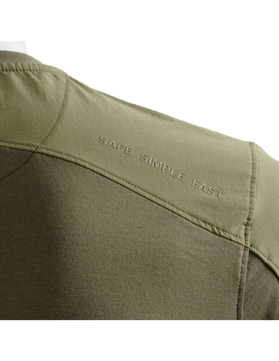 "SAFE. SIMPLE. FAST." Inscription en impression ton sur ton haute densité sur l'épaule